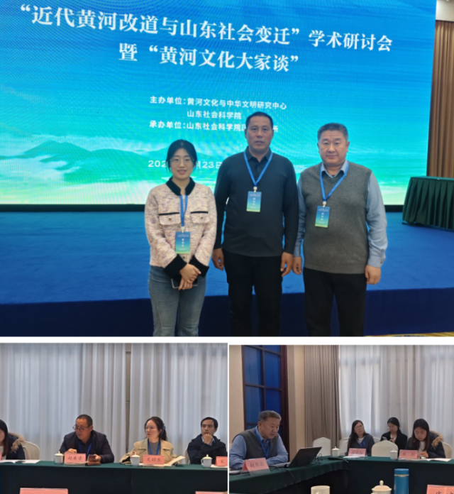 11月22-24日,由黄河文化与中华文明研究中心、山东社会科学院主办,山东社会科学院历史研究所承办的“近代黄河改道与山东社会变迁”暨“黄河文化大家谈”学术研讨会,在济南召开。来自全国高校、科研院所、政府相关部门的学者百余人齐聚泉城,围绕“近代黄河改道的历史脉络”“黄河文化的当代价值”“黄河流域治理的经验传承”等核心议题展开深入研讨与思想碰撞。我院研究员赵美鲁、康建军老师与研究生徐铭、程琳参会,全程参与学术交流。